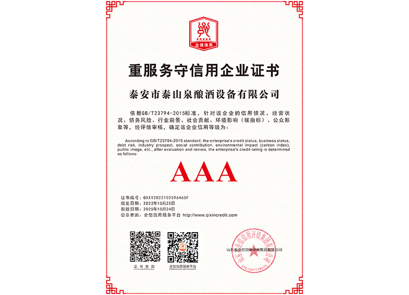 泰安市泰山泉釀酒設(shè)備有限公司,是一家專業(yè)從事釀酒設(shè)備機械化研發(fā)并集技術(shù)咨詢,工程設(shè)計,制造安裝,人員培訓(xùn)及售后服務(wù)為一體的綜合性企業(yè),本公司主要產(chǎn)品為:大曲清香、小曲清香、大曲醬香、大曲濃香等香型白酒機械化設(shè)備。 本公司與中國科學(xué)院自動化研究所簽訂技術(shù)服務(wù)合同,引進(jìn)先進(jìn)技術(shù),研究生產(chǎn)全自動化機械釀酒設(shè)備,由中國科學(xué)自動化研究所的技術(shù)支持,打造最先進(jìn)的生產(chǎn)釀酒設(shè)備,公司有信心打造全國最先進(jìn)白酒...